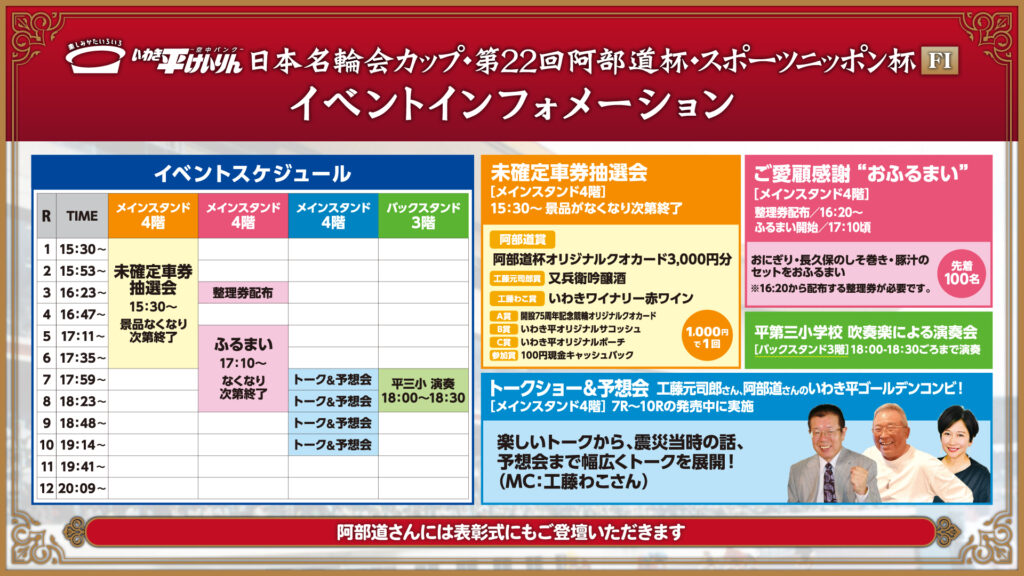 2026年3月11日(水)、「日本名輪会カップ・第22回阿部道杯・スポーツニッポン杯(FⅠ)」3日目にイベントを実施します。
